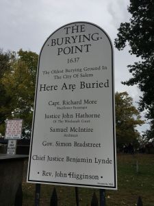The Burying Point Cemetery off Charter street is truly a sight to see – especially around Halloween. I have never seen more folks gathered in a cemetery (and gathered in costumes in a cemetery at that) than at the Burying Point in October. I’ve not even seen that many people at my family’s cemetery for decoration. The Burying Point is the oldest cemetery in the city where witch trial judge, Justice John Hathorne (great-great grandfather to the novelist Nathaniel Hawthorne) is laid to rest. If you actually want to look around, I would recommend visiting before October 28-31 or after October 31 for less crowded conditions.