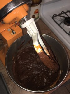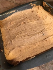 - Mix pumpkin, brownie mix and spices together until everything is well incorporated