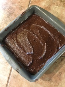 - Grease a 8×8 baking pan (cook time may vary by the size or the baking pan you use along with the thickness of your brownie)