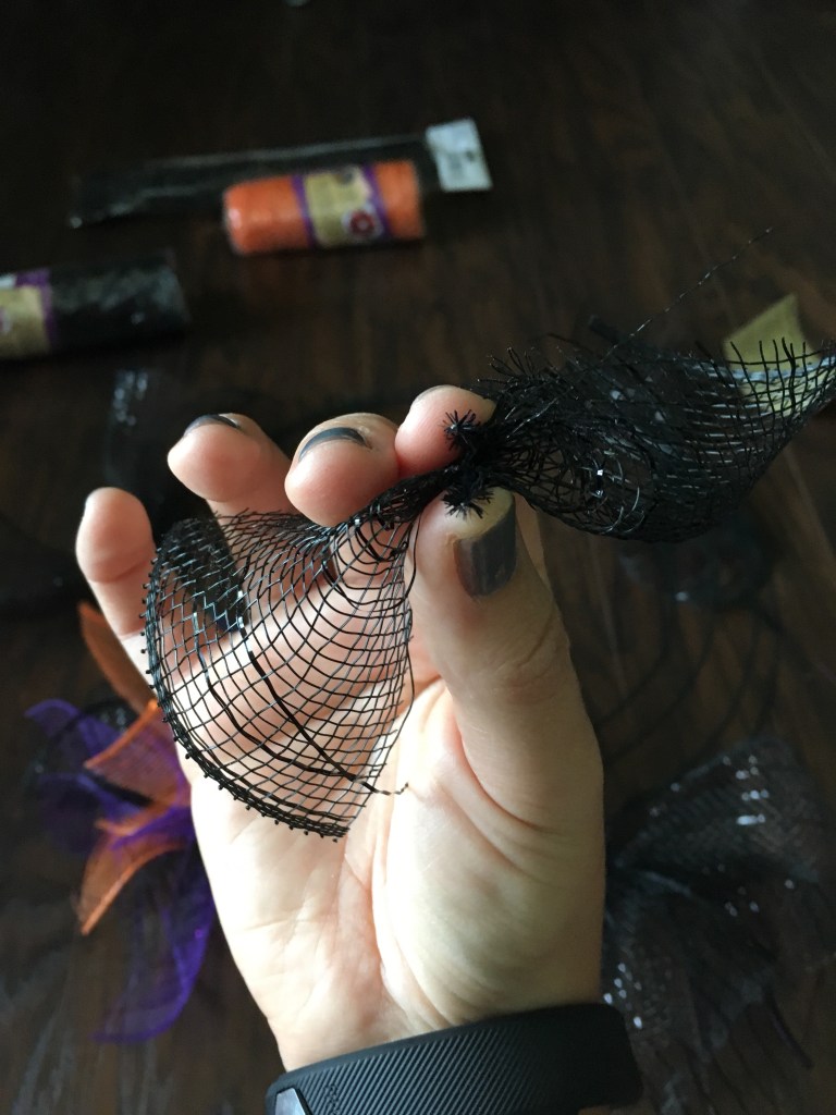 1. I did mostly black mesh and randomly added in pops of purple and orange. I didn’t stick to a pattern, I made it somewhat spontaneous where the colored strips were placed. However, you can stick to a pattern to create a different look that will be just as amazing!