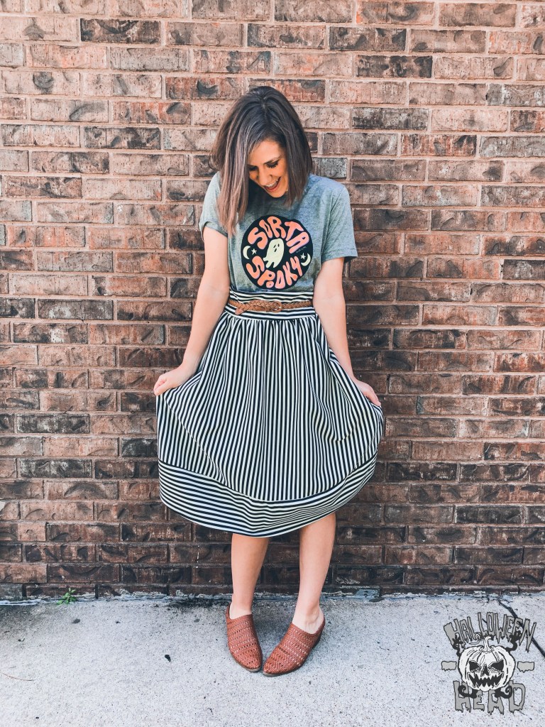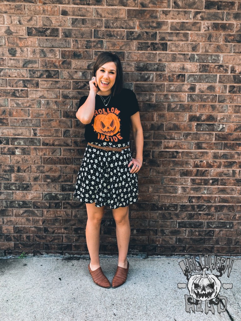 This “Hollow Inside” tee I’m wearing above I got from Doodle by Meg! Meghan Wallace is fellow Oklahoman and designer who has many Halloween-themed original designs on her Society6 and Redbubble shop and also an array of cute, whimsical patterns, cacti and Gilmore Girls inspired artwork.