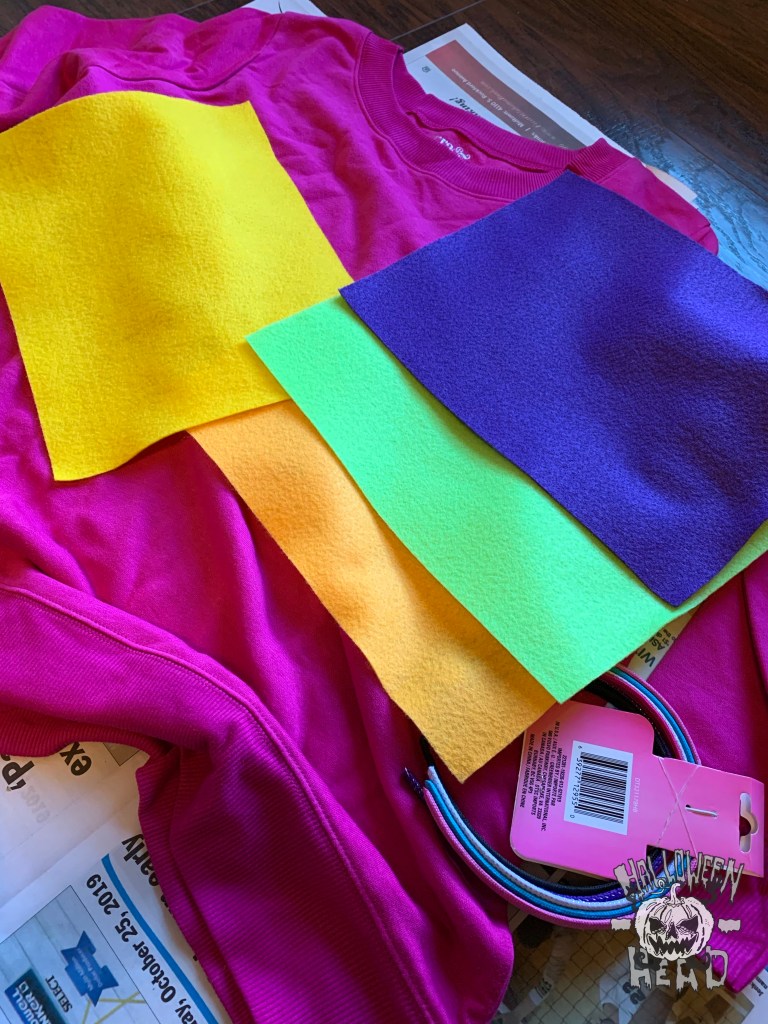 I got a stack of different colored felt in the craft aisle for a few bucks as well and also found a pack of headbands that had a hot pink one in the mix.