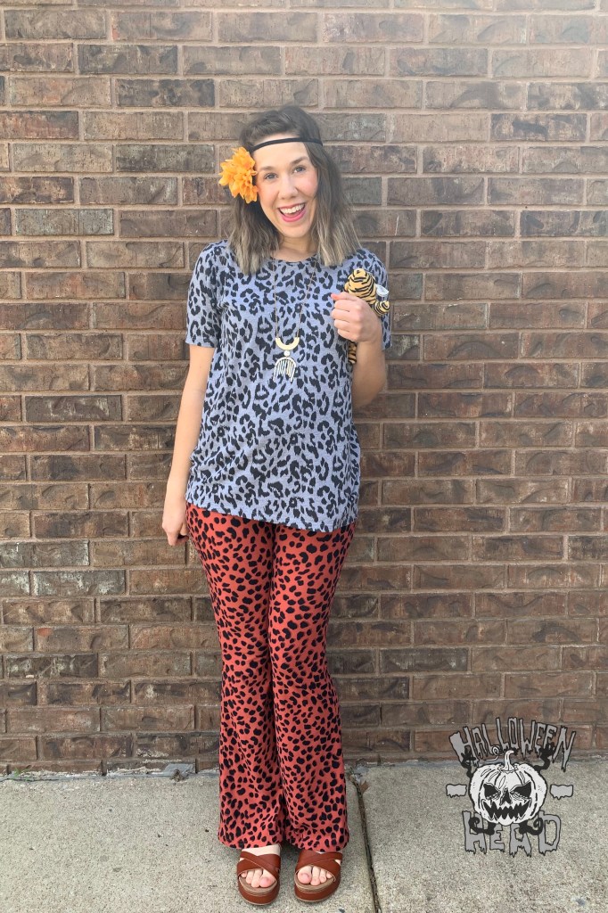 First up, Carole Baskin, the owner of Florida’s Big Cat Resuce. If you want to sport this outfit you’ll need nothing but animal print from top to bottom and a floral headband or a simple flower behind your ear. Don’t forget your stuffed kitty companion as well!