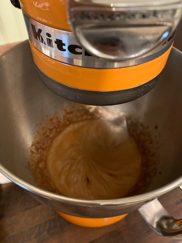 - Mix on high until the mixture begins to lighten up in color and becomes fluffy (roughly 2-3 minutes)