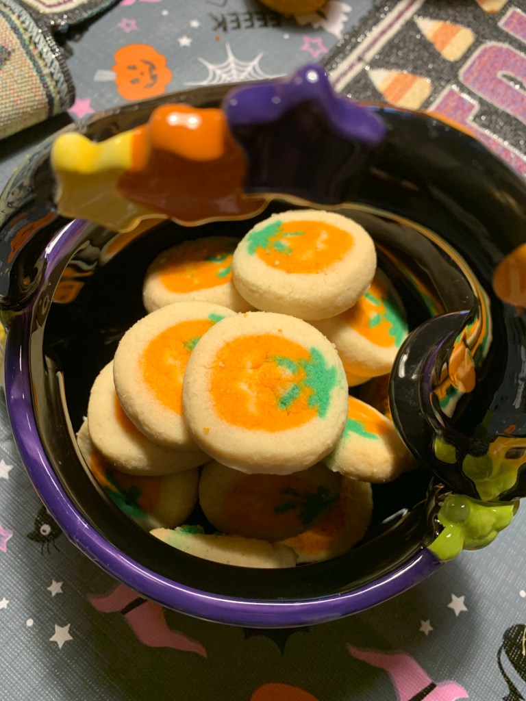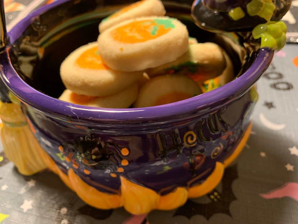 Since it is Halloween time, cookies at breakfast are a perfectly acceptable little treat and are even more enticing while being served in a spooky ceramic witch’s cauldron.