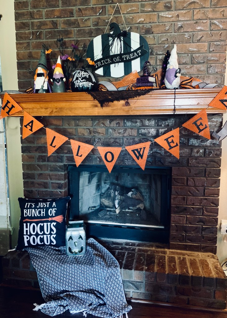 Charming Halloween mantel! I personally wait until September 1st each year to decorate for the season of Fall / Halloween. My favorite time of the year. I have an annual tradition of picking out a few things at Michaels crafts and then stepping into Spirit Halloween at the start of this month as well.