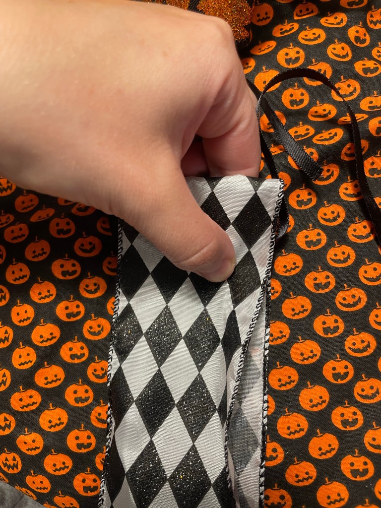 I used some of that ribbon to string onto a larger ribbon to create my “Spooky One” banner.