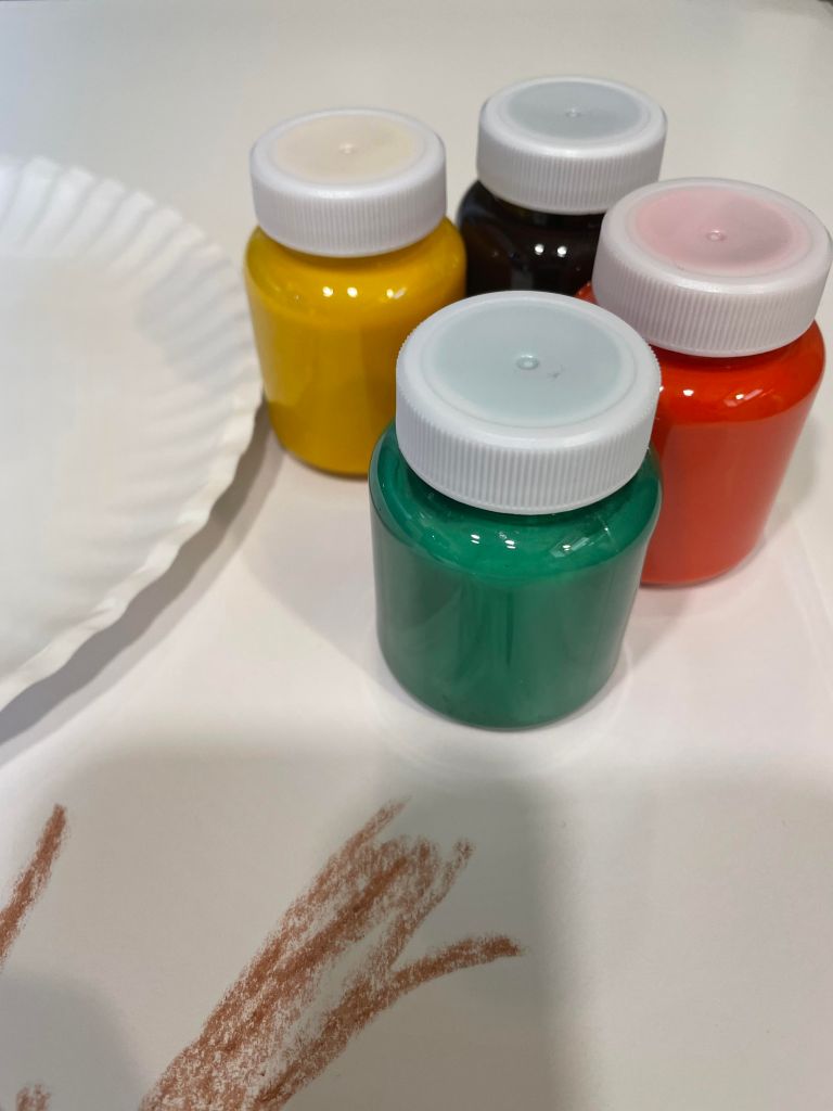 For this activity you will need white paper/construction paper, cotton swabs, a brown crayon/marker/paint, and washable paints.