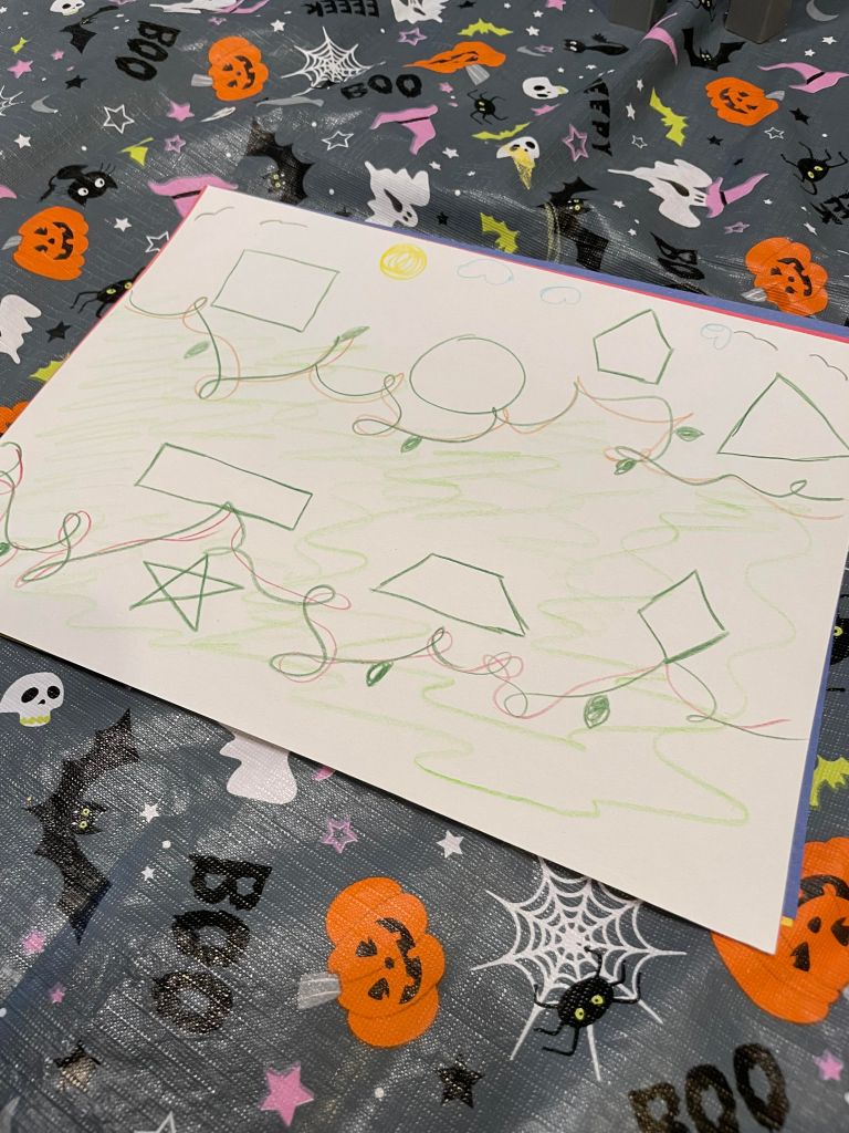 It’s a great way to talk about colors, shapes and count the different shapes/how many pumpkins there are which is a great learning activity all bundled into one spooky little pumpkin patch.