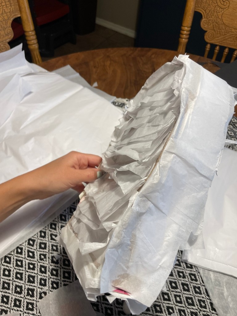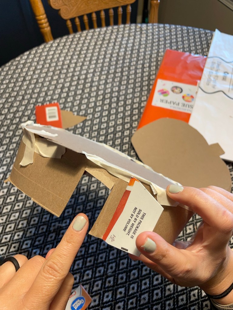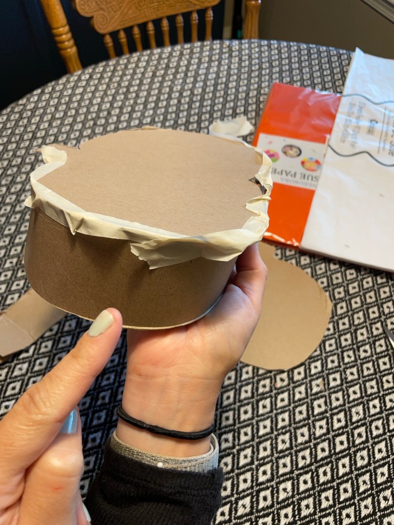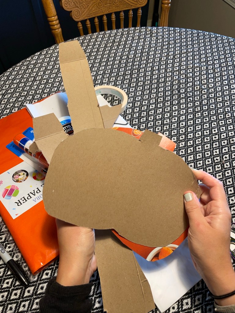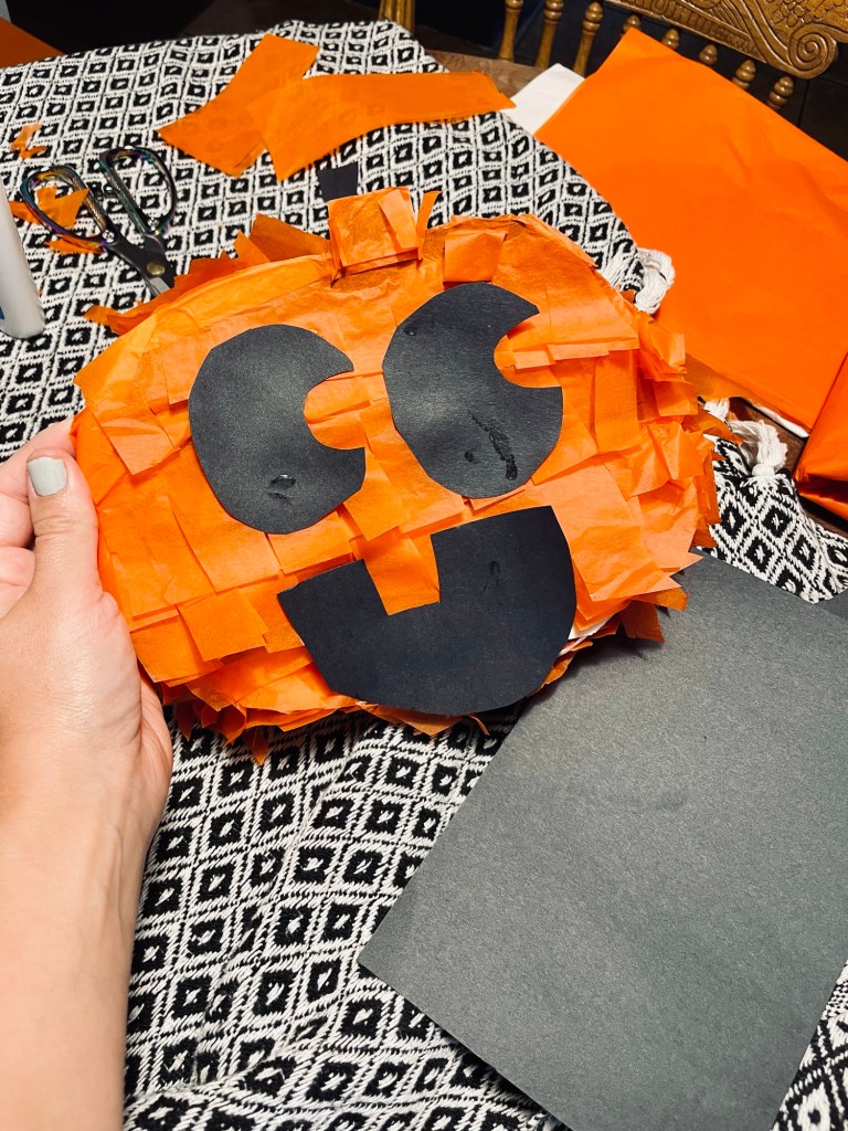 I had to find orange tissue paper on Amazon because my Dollar Tree did not have any in stock, and I even looked for crepe paper (which can also be used if tissue paper isn’t desired for the the look you want to achieve or if it’s cheaper for ya).