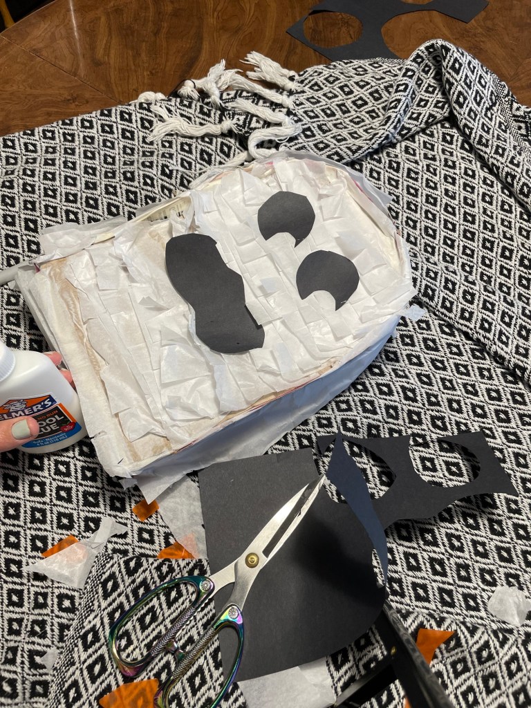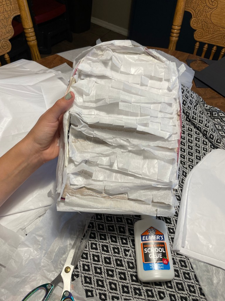 Once your piñata box is assembled it is not time to add the tissue paper and the flair!