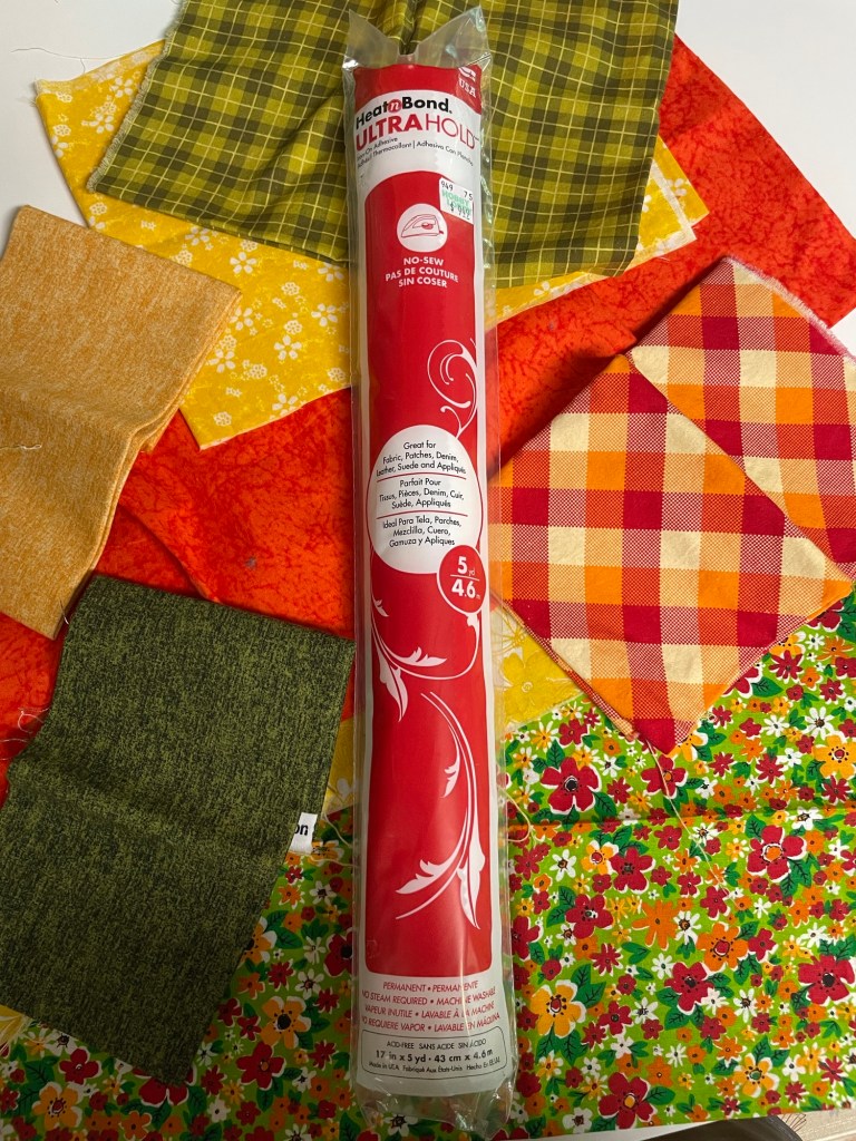 I purchased iron-on adhesive for appliqués from Hobby Lobby in the sewing section. They come in sheets and rolls, and I opted to buy the roll because it had more material which I may use for future projects.