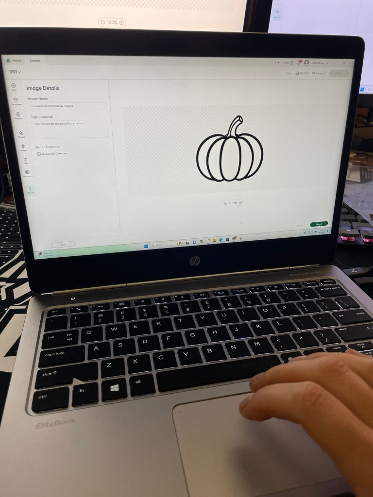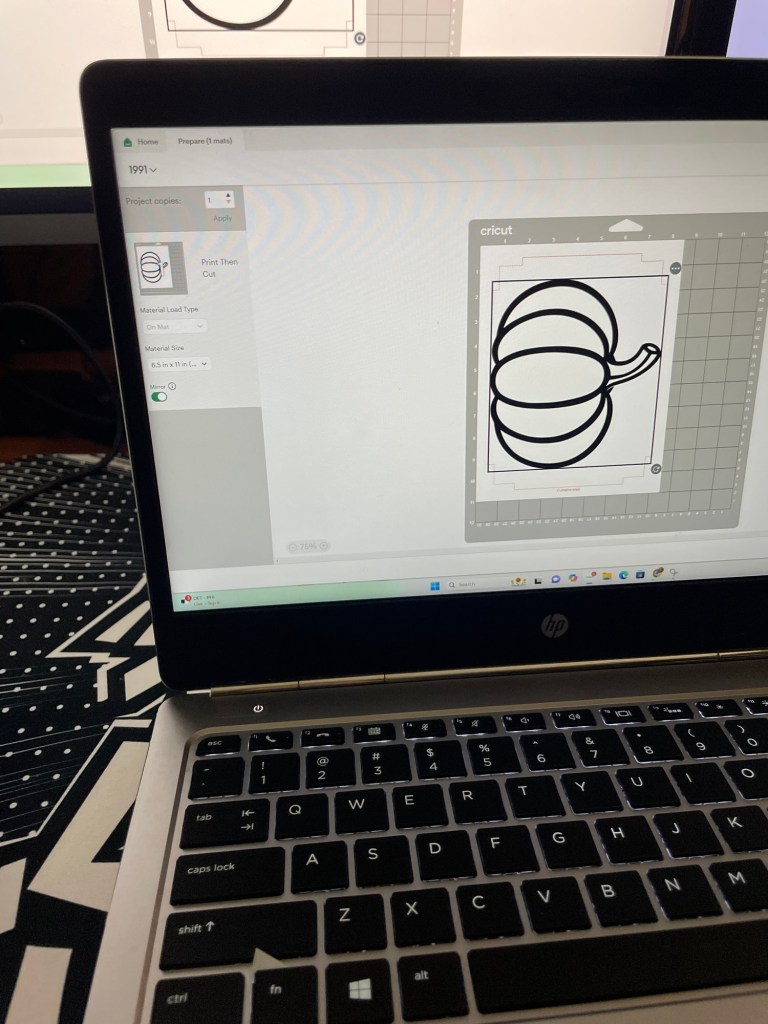 I wanted to specifically create a “pieced together” pumpkin look so I searched the internet for a shape I could use as a template for cutting my fabric pieces. I used my Cricut to cut the image on card stock but this step is optional. If you’re steady with drawing, go ahead and free hand it!