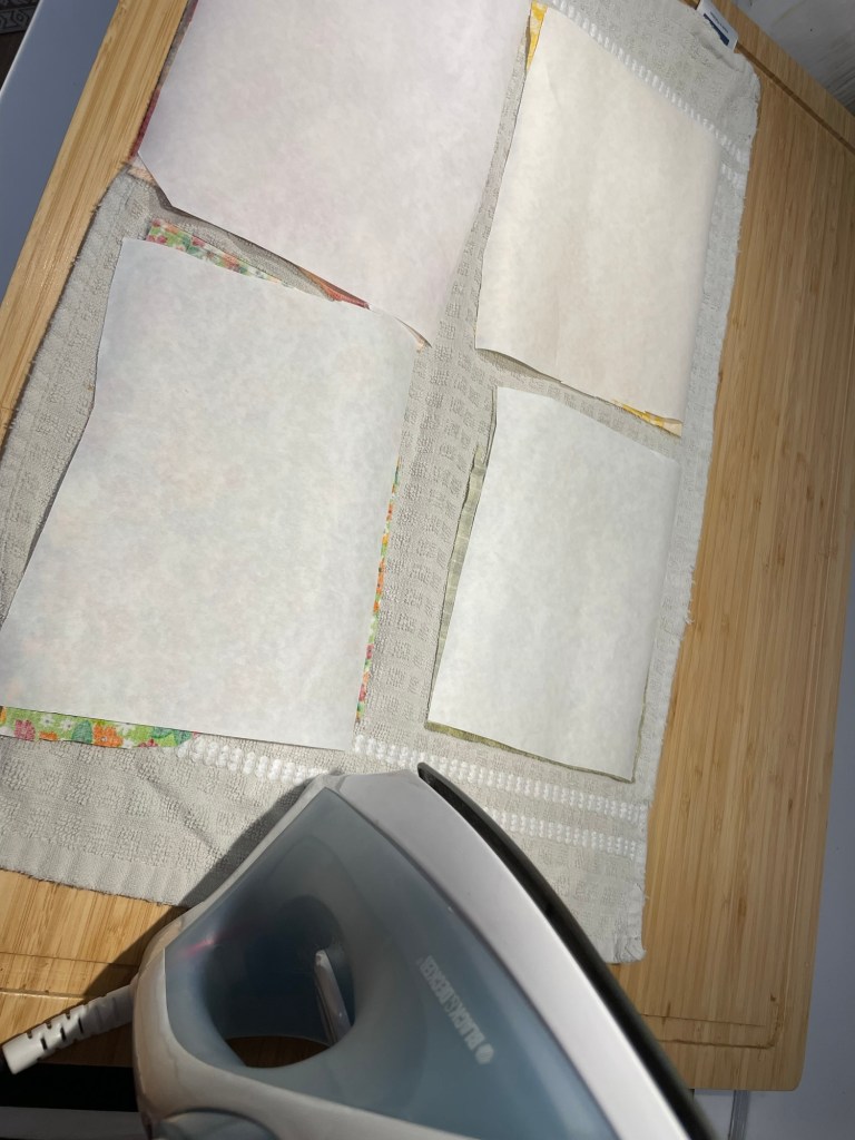 Once the adhesive is secured to the fabric using a hot iron, the pieces should feel a little stiff. Now you can cut your patches/segments out as desired: