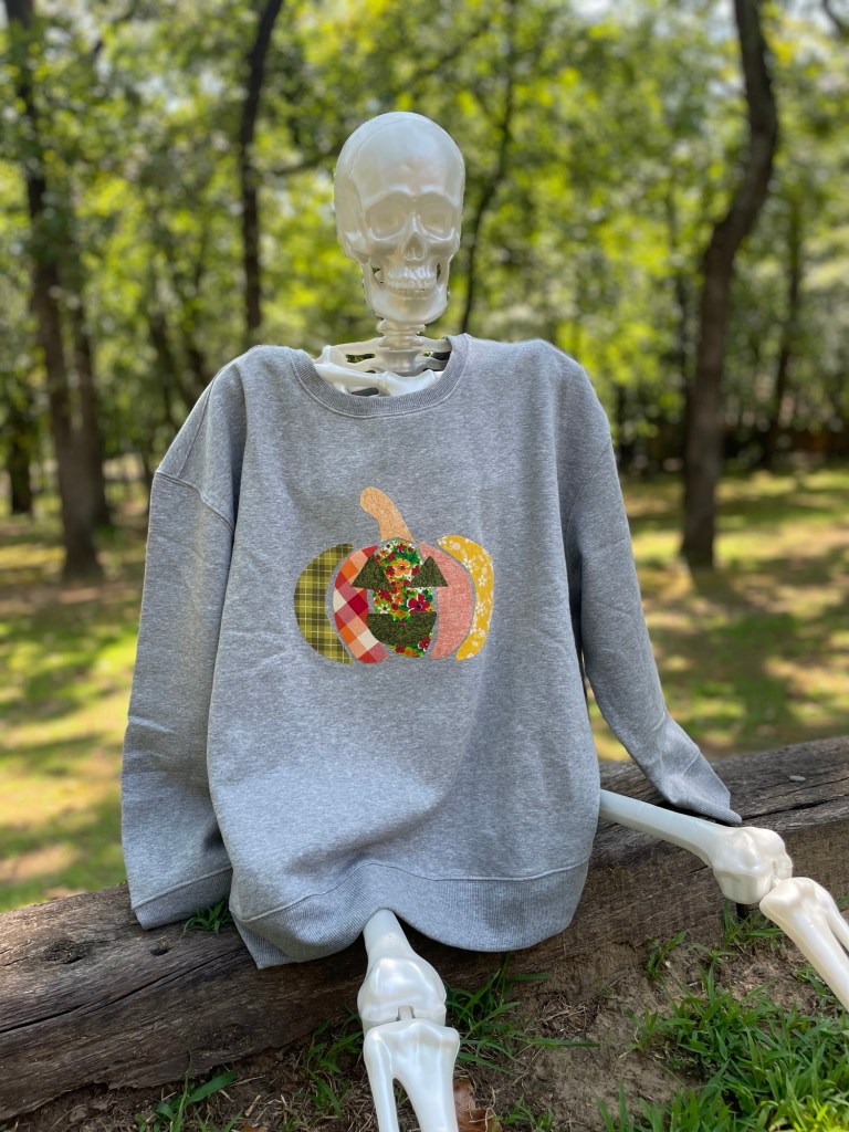 The sweatshirt I nabbed was $5 from Walmart too so I stocked up and got another one incase I’m inspired to do a patchwork ghost sweater next. At that price, you can get crafty all season long and the possibilities are endless!!!