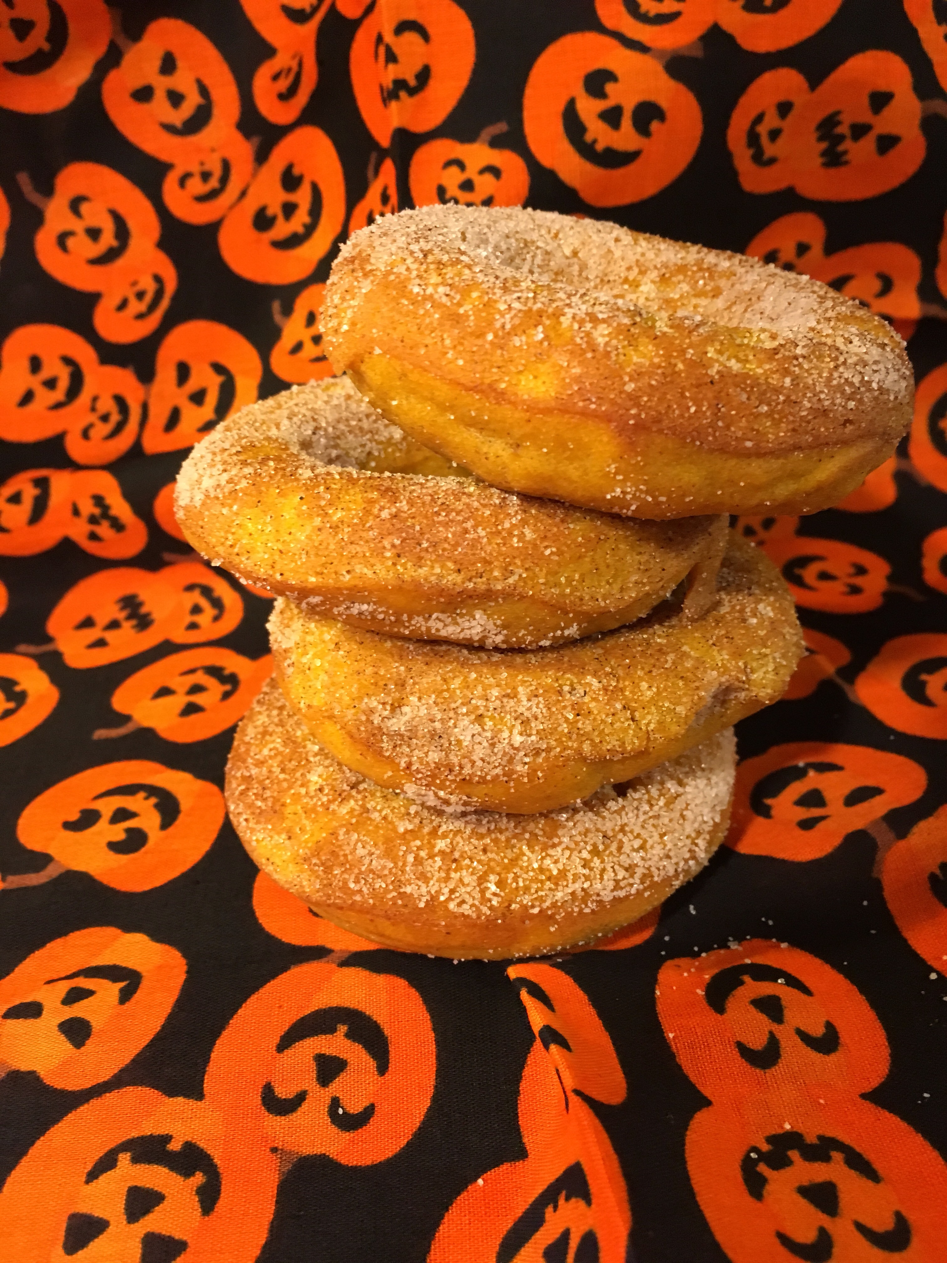 I love making pumpkin baked goods, and this year I have taken great joy in baking my own donuts. Baked donuts at home are healthier than fried donuts, and just as delicious. I recommend you have a donut mold pan to bake with, which are fairly inexpensive. I picked up a two pack of Wilton donut pans on Amazon for $13.50 earlier this season. (Always grease your pan well when baking to make it easier to pop them out. I just give mine a good spray with canola oil)